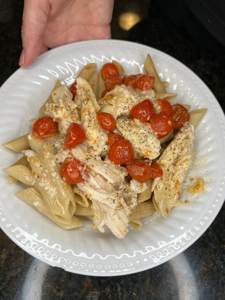 Long before I was on TikTok, I heard about the viral TikTok pasta and decided to make it dairy free. It’s since been an easy dinner that satisfies the whole family. Especially my cherry tomato loving son! This recipe can easily be made gluten free. See notes at the end.