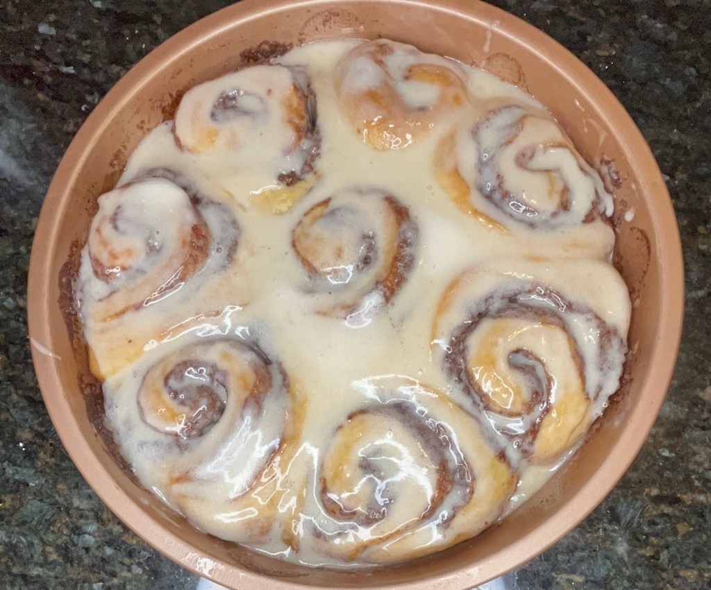 - Cut into 1” instead of 2” strips for smaller cinnamon rolls that are more portion-friendly. I froze the second half before the final rise to bake later.
